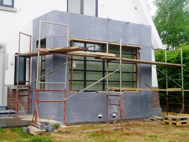 Galmaarden Gevelplint en trapbekleding Belgisch hardsteen geschuurd